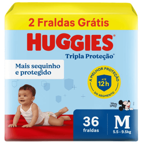 FRALDA HUGGIES TRIPLA PROTECAO M MEGUINHA GRATIS 2 FRALDAS –